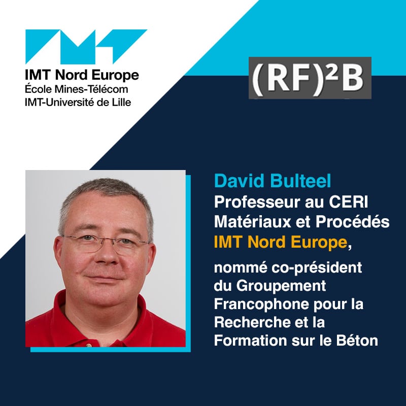 Depuis janvier 2026, David BULTEEL, Professeur au Centre d’Enseignement, de Recherche et d’Innovation Matériaux et Procédés (CERI MP) d’IMT Nord Europe, est devenu co-président du Regroupement Francophone pour la Recherche et la Formation sur le Béton (RF)²B.