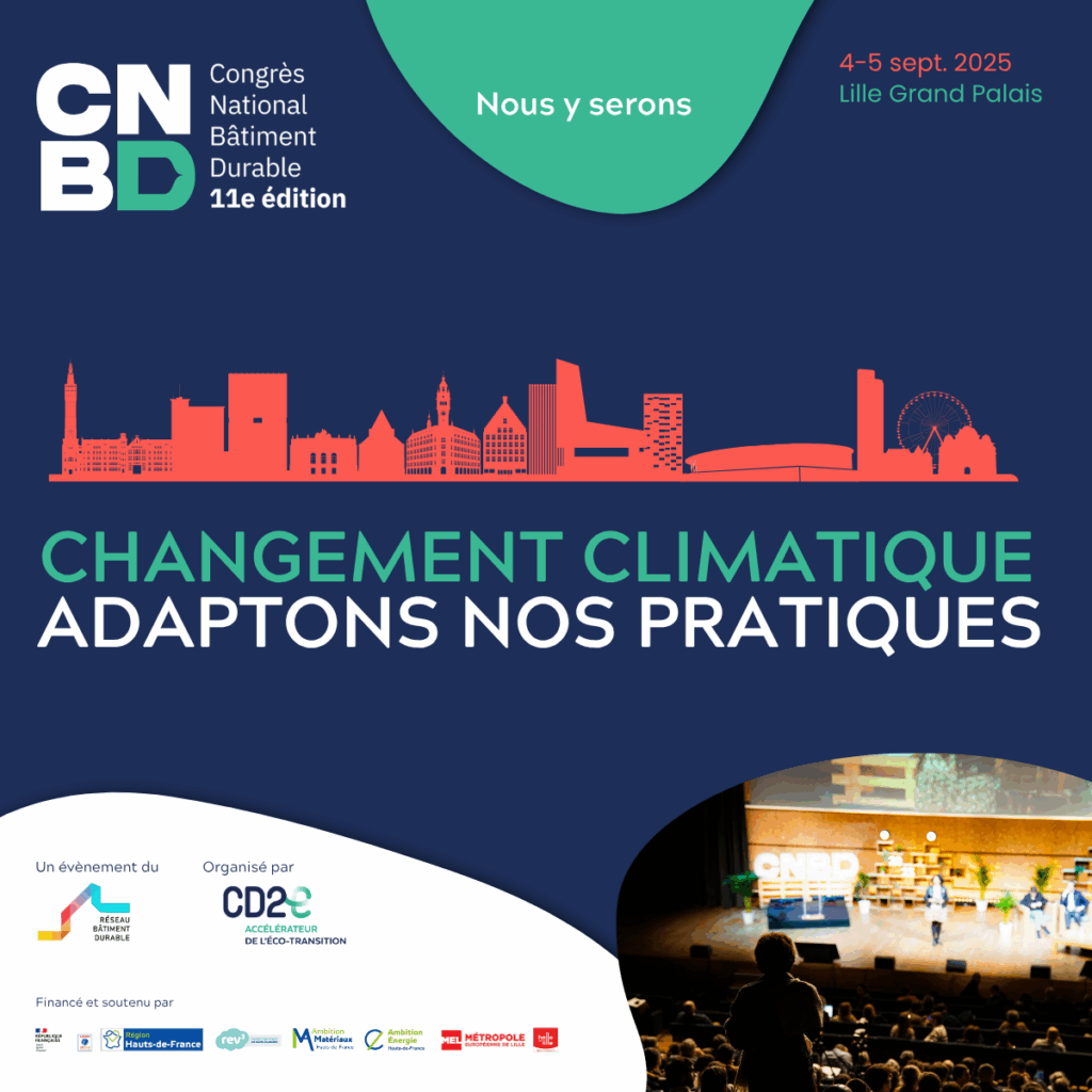 Dans un contexte de transformation accélérée face aux défis du changement climatique, la manière dont nous concevons, rénovons et construisons nos bâtiments doit impérativement évoluer. Pour cela, le CD2E, en accord avec le Réseau Bâtiment Durable et l’ADEME Nationale, inscrit la 11e édition du Congrès National Bâtiment Durable, dans cette réflexion essentielle :  « Changement climatique : adaptons nos pratiques »