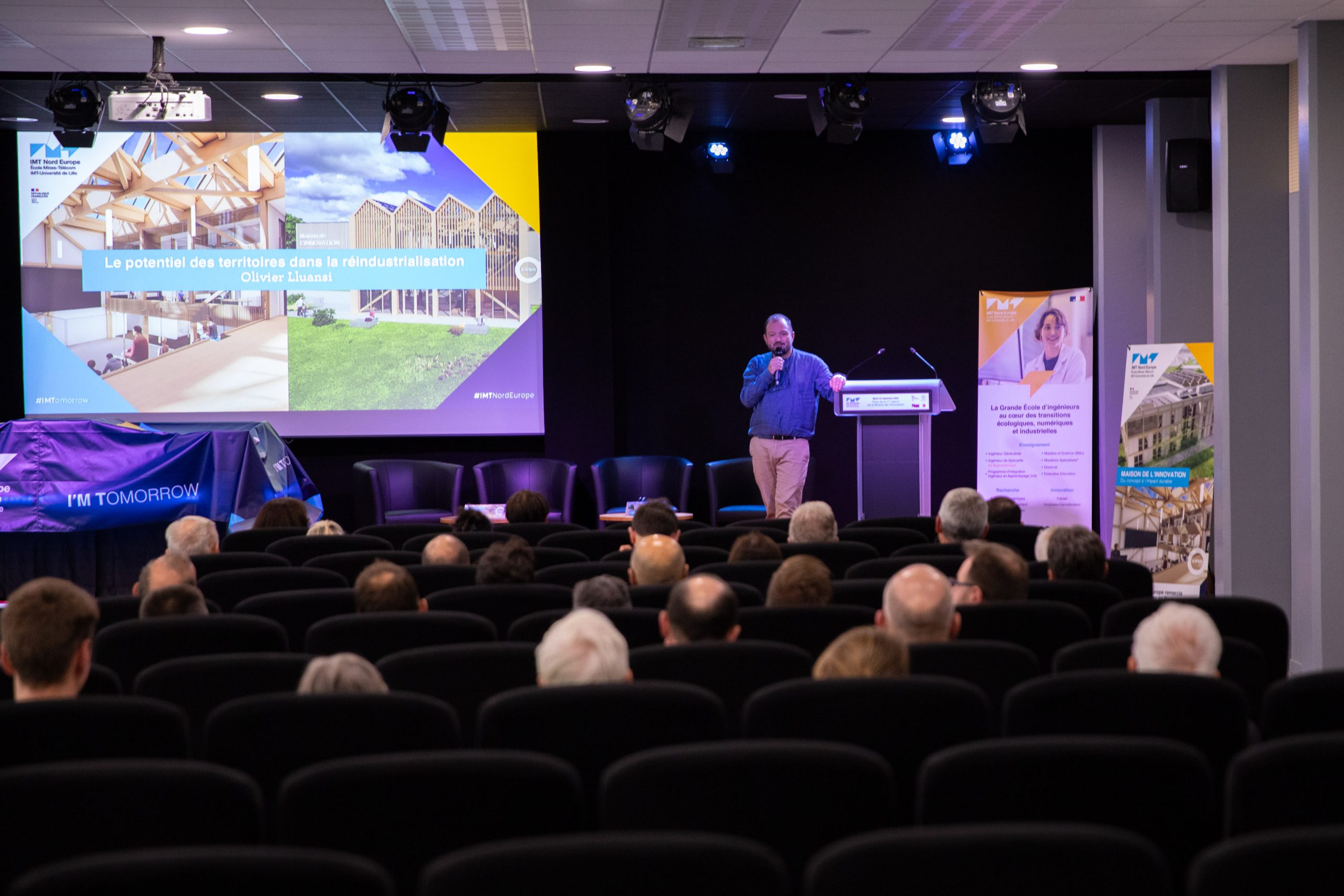 La cérémonie s’est ouverte par le discours de Céline Fasulo, Directrice d’IMT Nord Europe, rappelant l’importance de ce projet pour l’école et son écosystème. Elle a été suivie d’une conférence inspirante d’Olivier Lluansi, professeur à Mines Paris – PSL et au Conservatoire National des Arts et Métiers, titulaire de la chaire « Industrie décarbonée ». Son intervention, consacrée au potentiel des territoires dans la réindustrialisation, a mis en lumière les enjeux stratégiques auxquels répond la MDI.