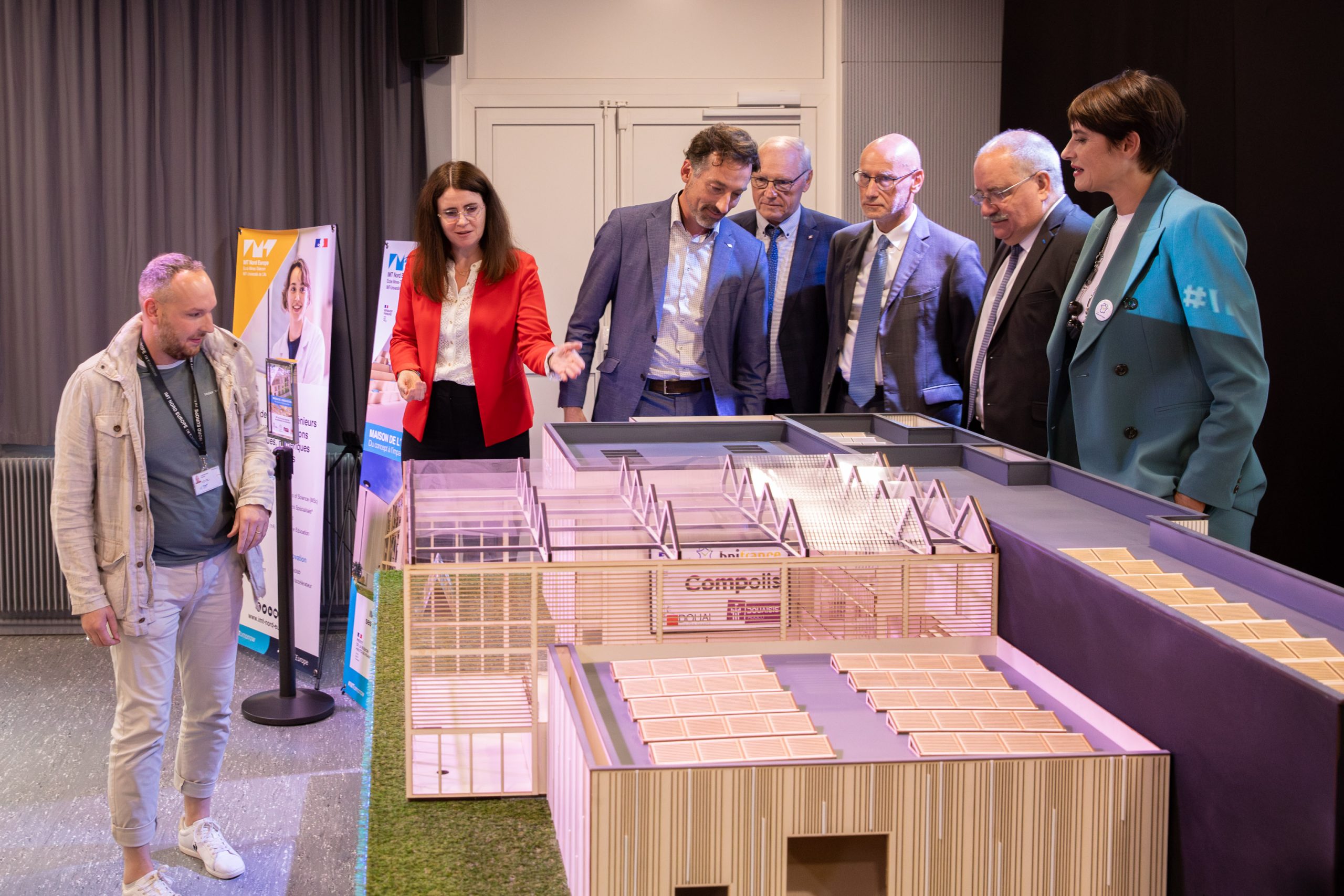 Moment fort de l’événement : la présentation de la maquette 3D du futur bâtiment, conçue avec l’expertise du FabLab de l’école. Celle-ci a été dévoilée en présence des partenaires institutionnels et financeurs – Ville de Douai, Douaisis Agglo, Région Hauts-de-France et l’État –, illustrant la dynamique collective autour de ce projet structurant.